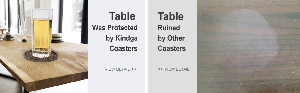- PERFECT SIZE & DEEP TRAY: Kindga large drink coasters diameter 4.3 inches coasters can fit any large & small mug, cup or bottle. And the deep groove of 4.3 mm, an upgraded version compared to the common version on the market. The upgrade version flat cool rubber coasters for drinks can protect your desk well.